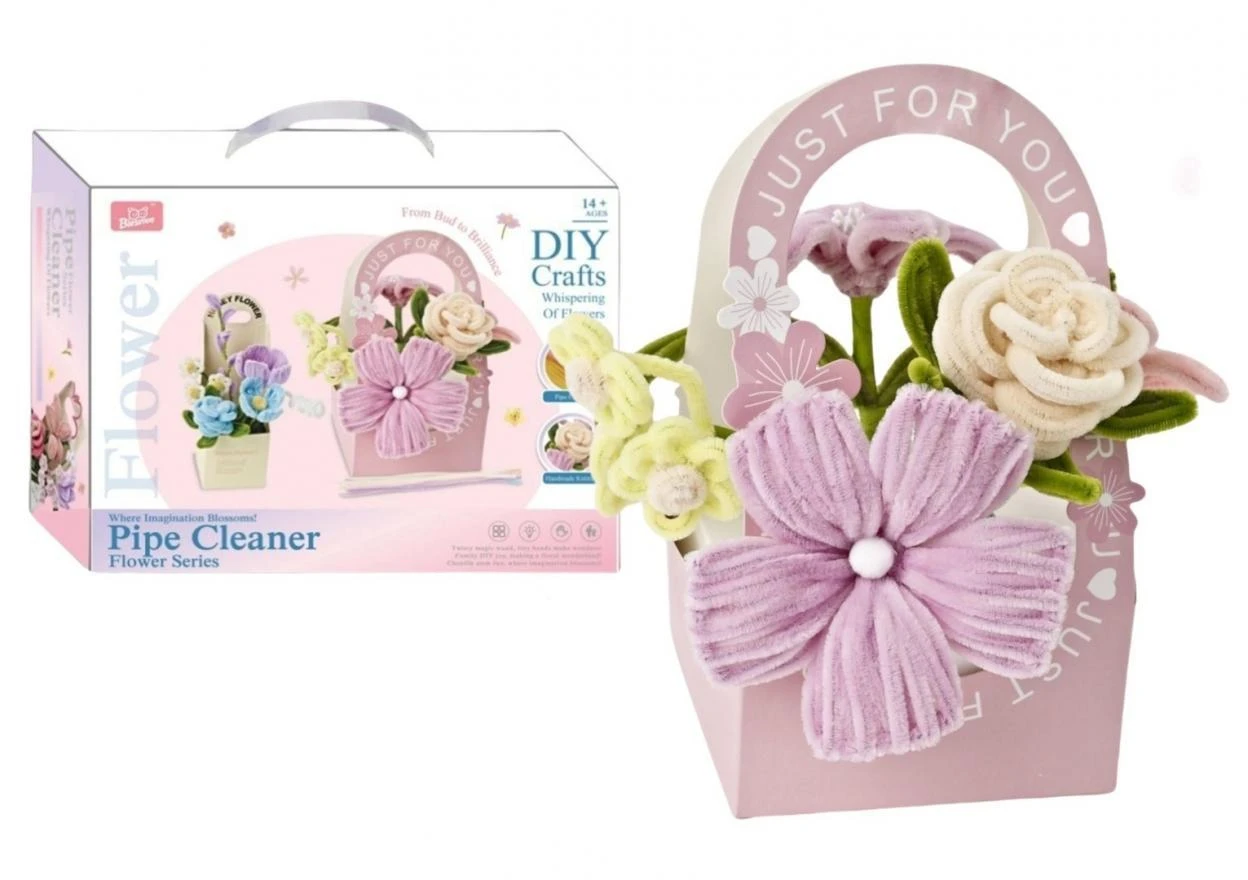 W zestawie: druciki kreatywne, ozdobne pudełko, elementy do ręcznego tworzenia kwiatów, łodyg i liści; wym. opak.: 34 x 35,3 x 10 cm; 14+