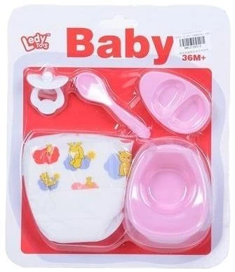 Podaruj swojemu dziecku jeszcze więcej radości z zabawy lalkami bobasami dzięki naszemu uroczemu zestawowi akcesoriów! Ten kompleksowy zestaw zawiera pięć niezbędnych elementów, które urozmaicą każdą zabawę w opiekę nad maleństwem. W zestawie znajduje się mięciutka pieluszka z kolorowymi obrazkami, idealnie pasująca na większość standardowych lalek bobasów. Do karmienia dołączyliśmy uroczą, różową miseczkę z dwoma przegródkami oraz dopasowaną łyżeczkę. Gdy nadejdzie czas odpoczynku, pomoże smoczek z wygodnym uchwytem. A gdy "dziecko" podrośnie, w zestawie znajdziecie także miniaturowy nocniczek. Wszystkie elementy wykonane są z bezpiecznych i trwałych materiałów. Zestaw przeznaczony jest dla dzieci powyżej 36 miesiąca życia i stanowi doskonałe uzupełnienie kolekcji akcesoriów do lalek, rozwijając wyobraźnię i umiejętności społeczne poprzez zabawę w odgrywanie ról.