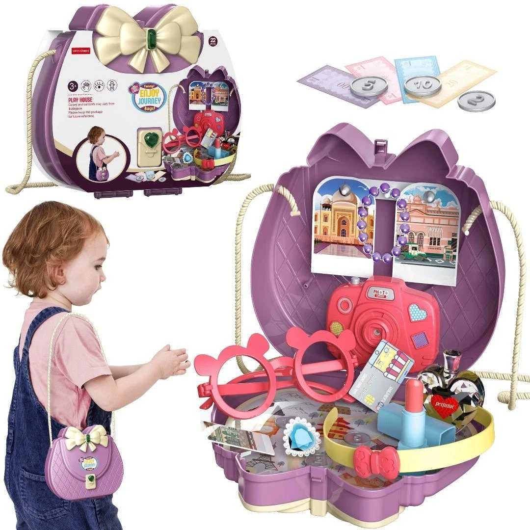 Zestaw "Enjoy Journey Bags" to spełnienie marzeń każdej małej modnisi i podróżniczki. Ta urocza, fioletowa torebka z elegancką złotą kokardą skrywa w sobie wszystko, co niezbędne podczas wyprawy do miasta, na spacer czy na spotkanie z przyjaciółkami. To nie tylko modny dodatek, ale kompletne centrum kreatywnej zabawy w "odgrywanie ról".